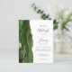 Den här elegantens lämnat kant har en modern bröllopsinbjudan med en grönt som är en som är en jägare och som är vattenfärgad i gräns som trimmas med faux guld glitter. Anpassadet kombinerar handskrift, tryckplåt och kursivt typsnitt i grått i kol mot vit bakgrund. Den omvända sidan har en matchande grönt och guld agate-design.