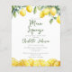 Denna moderna vattenfärg citrondesign för bröllopsdusch-inbjudan kan anpassas med din information i stilfull typografi. Designad av Thisisnotme©
