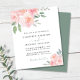 Budgetvänlig inbjudan till elegant bröllop med vattenfärgade buketter av blommigtar för rosa och ljusglänsande, snyggt och modern typografi.