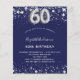 En modern, snyggt och glamorös inbjudan till en 60:e födelsedagsfest. En marin blå bakgrund, dekorerad med faux silver-stjärnor. Anpassa och lägg till ditt namn och information om party. Nummer 60 skrivs med ett stil-teckensnitt med ballong.