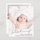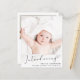 Ett budgetvänligt alternativ för att tillkännage din baby födelse, med ett foto med "Introducing" skrivet ovanpå i ett skript för snyggt med en hjärtsvasch. Under jorden tillsätts hans eller hennes namn, födelsedatum och födelsestatus. Lägg till ytterligare ett foto- och personlig-meddelande på baksidan.