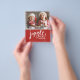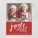 Budget Julsång hela vägen | Modern Foto Jul Flyer/Kort - Budgetkort med ditt vackra foto ramad med en snögräns. Jingle all the way finns också med i ett handskrivet teckensnitt. Kortet är personligt med redigerbar God Jul med ditt efternamn. Detta är ett budgetalternativ. Om du föredrar ett tjockare kort, välj ett av våra vanliga kort eller vykort. Kortet är en del av en samling.