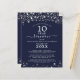En budgetvänlig modern och elegant marinblå klassåterträff-inbjudan (exemplet visar 10 år) för vilket år som helst tryckt på 4,5x5,6-tums lättvikts papper istället för kartong med silverstjärnor och ljus, elegant script-typografi och en anpassad färgbakgrund (visas i marinblått) som du kan ändra till din skolfärg eller festtema färg. All text är redigerbar för att göra din egen. Perfekt för konservativa budgetar och/eller handleverans till gäster. HJÄLP: För hjälp med designändring eller anpassning, färgbyte, storleksändring, överföring av designen till en annan produkt eller om du vill ha koordinerande artiklar, kontakta designern INNAN du beställer via Zazzle Chattens MEDDELANDE-flik nedan eller