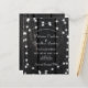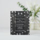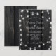 Lantlig country budget prisvärd bröllopsinbjudan med strängar av gnistrande ljus på en mörk lada trä bakgrund och ett chic kalligrafi manus, ++++++++++++++++++ Lämplig för sommar, höst, eller vinter trädgård, bakgård, utomhus, lada, bondgård bröllop.