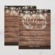 Med vackra strängljus och en handritad blomsterkrans är denna eleganta budget lantliga träbröllopsinbjudan personlig med din information i chic bokstäver på en träpanel bakgrund. Designad av Thisisnotme©