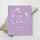 Meddela din förlovning med den här budgeten spara datumet lakan. Den har lavender-linjekonst i vitt med en blandning av klassisk och skripttypografi i vitt över en solid lila bakgrund. Alla färger kan anpassas för att passa ditt bröllop färg-program. Använda mallen fält att anpassa med ditt namn och bröllop-datum. En minimal utformning av eleganten för trädgårdsälstingidéer på en budget. Om du vill se matchande bröllop-skrivarsvit går du till www.zazzle.com/dotellabelle