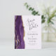 Den lämnat kant i eleganten i den moderna bröllopsinbjudan har en lila vattenfärgsagat gräns som trimmas med faux guld glitter. I anpassadet kombineras grått-handskrift, kopieringsskylt och kursivt typsnitt på blekens lavender-bakgrund. Den omvända sidan har en matchande lila- och guld-agate-design.