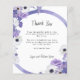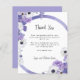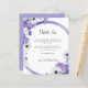 Budget Lila Blommig Ram Bröllopstackningskort. Ett prisvärt mindre alternativ på 4,5 x 5,6 tum som standard är halvmatt vilket rekommenderas för inbjudningar och har samma tjocklek som ett vykort. Sidentrycket är mycket tunnare.