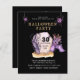 Denna budget skräckinjudan till en Halloweenfest med en lila rolig fladdermus, en gravsten och lila spindlar på svart bakgrund. På baksidan finns också en fladdermus med en gravsten och skogsgrenar i orange och lila nyanser. Anpassa den och njut av den.
