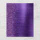 Den vänstra kanten på denna eleganta moderna bröllopsinbjudan har en lila falsk glitterkant. Den anpassningsbara texten kombinerar vit handskrift, kopparstick och kursiva teckensnitt på en lila falsk borstad metallbakgrund. Baksidan har en matchande glitter- och borstad metalldesign.