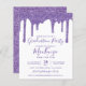 BUDGET Lila Glittrande Glitterdroppar Examenfest Inbjudan med falska glitterdroppar på en chic vit bakgrund. Designad av Cedar and String. För att anpassa ytterligare, klicka på "anpassa ytterligare"-länken och använd designverktyget för att ändra designen. **Vårt BUDGET-papper är mindre och mer ömtåligt, men fortfarande vackert!** Om du behöver hjälp eller matchande artiklar, vänligen kontakta oss på cedarandstring@gmail.com.
