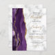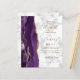 Den vänstra kanten på denna eleganta moderna bröllopsinbjudan har en lila akrylfärg agat kant med falskt guld glitter. Den anpassningsbara texten kombinerar svart och guld-färgad handskrift, kopparplåt och kursiv stil på en grå och vit marmorerad bakgrund. Det grå och vita marmormönstret upprepas på baksidan av kortet.