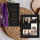 Den lämnat kant i eleganten i den moderna bröllopsinbjudan har en lila vattenfärgsagat gräns som trimmas med faux guld glitter. Med anpassadet kombinerar du handskrift, formatmall och kursivt typsnitt med guld-färgad mot svart bakgrund. På baksidan finns blanksteg för 4 foton (1 kvadrat, 2 vågrät, 1 långt lodrät) och plats för webbadressen för bröllop eller annan information. Obs! Kuvert inkluderas inte automatiskt i dessa budgetinbjudningar, så kom ihåg att välja alternativet "vita kuvert"!