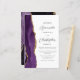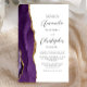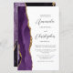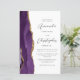 Den lämnat kant i eleganten i den moderna bröllopsinbjudan har en lila vattenfärgsagat gräns som trimmas med faux guld glitter. Anpassadet kombinerar grått-skriptet för kol och sans serif typsnitt på vit bakgrund. En matchande lila-agate-design visas på baksidan av kortet.
