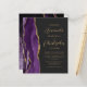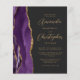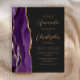 Den lämnat kant i eleganten i den moderna bröllopsinbjudan har en lila vattenfärgsagat gräns som trimmas med faux guld glitter. Anpassadet kombinerar skript av guld-färgad och sans serif typsnitt på en svart bakgrund. Den omvända sidan har en matchande lila- och guld-agate-design.