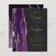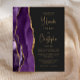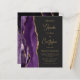 Den lämnat kant i eleganten i den moderna bröllopsinbjudan har en lila vattenfärgsagat gräns som trimmas med faux guld glitter. Anpassadet kombinerar skriptet trendig guld-färgad och sans serif typsnitt på en svart bakgrund. Den omvända sidan har en matchande lila- och guld-agate-design.