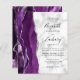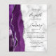 Den lämnat kant i eleganten i den moderna bröllopsinbjudan har en lila vattenfärgsagat gräns som trimmas med faux silver glitter. Anpassadet kombinerar svart handskrift, tryckplåt och kursivt typsnitt på grått och vit marmorbakgrund. Den omvända sidan har en matchande lila- och silver-agate-design.
