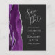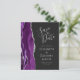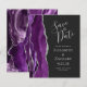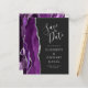 Den vänstra kanten på detta eleganta moderna bröllops kortsida för att spara datumet har en lila akvatint agatgräns med falskt silverglitter. Den anpassningsbara texten kombinerar silvergrå handskrift och kopparplåtstypsnitt på en off-black bakgrund. Baksidan har en matchande lila och silver agatdesign.
