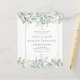 Den grekiska blommigten för vattenfärgsförsäljning i lilac-budget, som innehåller en inbjudan till söt och lilac-löv som tummar över en elegant guld ram som omger bröllop-detaljerna som anges i den klassiska eleganten. På motsatt sätt finns information om bröllop webbplats och OSA samt QR-kod. Designad av Thisisnotme©