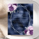 Den moderna bröllop-menyn i elegant har en silver-geometrisk ram som är dekorerad med lilac, lila och blommigt i silver på en marin blå folie. I anpassadet kombineras silver grått med fysisk handskrift, tryckplåt och kursivt typsnitt.