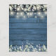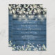 En inbjudan till ett fullboksbröllop med söt string ljus och sage och lilac löv som tumlar över en blå bakgrund för rustiska träskivor och dina bröllop-detaljer som anges i den klassiska eleganten. Designad av Thisisnotme©