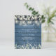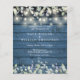 En rustik budget bröllopsinbjudan med fina ljuslyktor och salvia och lila blad som faller över en blå rustik träpanelbakgrund och din bröllopsinformation i klassisk elegant text. Designad av Thisisnotme