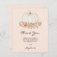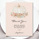 Detta budgetvänliga hösttema baby shower tacksamhetskort har en akvarellpumpa och grönska på en mjuk persikofärgad bakgrund. Perfekt för en höstflicka eller en könsneutral baby shower. Lätt att anpassa. Eftersom vi skapar vår egen konst hittar du inte exakt denna bild hos andra designers. Original Akvarell © Michele Davies.