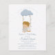 Cute Little Angel, First Birthday och Baptism Invation. Fira din lilla ängels första födelsedag och få deras baptismceremoni tillsammans med denna söta ängelinbjudan. Utformningen har en söt ängel sitta på en sväng hängande från ett blått skiffermoln med en speglad bakgrund.