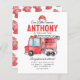 Cute our Little Fireman Helmet Fire Lastbil Firefighter Birthday-inbjudan