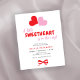Valentine's budget affordable baby shower invitation with A little sweetheart is on the way typography script featuring two hearts and a red bow.