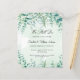 En grön akvarell bakgrund dekorerad med eukalyptus grönska, skogsormbunkar. Anpassa och ditt namn och ceremonidetaljer.