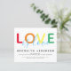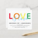 Bjud in vänner och familj att delta i din bröllopsfirande med denna regnbåge Love is Love bröllopsinbjudan. Observera att vårt sortiment av budget bröllopskort inte levereras med kuvert. Du kan beställa A6-kuvert från vår butik eller från din favorit kontorsmaterialbutik.