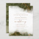 Den här inbjudan från elegant bröllop innehåller en oliv grönt vattenfärgsdesign från gräns i en kopia av marmor som är ved med faux guld folie, som gradvis tonas ner i den vita bakgrunden. Ord "bröllop" visas i handskriftsskript för guld-färgad, med den återstående texten i versaler för serif-versaler för guld-färgad. Den oliv grönt marmor och guld marmor mönster upprepas på kortets baksida.