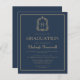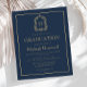Denna klassiska och eleganta inbjudan till examensfest har ett guldfärgat monograminitial i typsnitt med öppen serif inringad av en linjär akantuskrans på en marinblå bakgrund. Anpassa texten med examenstagets namn och festsdetaljer. Baksidan av kortet är enfärgat marinblått. Perfekt för en examen från high school, college eller universitet.