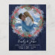 Elegant och modern inbjudan för det vinter- eller julbröllopet. Denna design har en chic blomsterkrans med bär och vinterlövverk som ramar in ditt favoritparfoto, allt på en marinblå, rustik trädgård bakgrund. Anpassa informationen på framsidan och baksidan av denna design för att skapa din unika och speciella inbjudan.