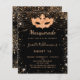 För en elegant Masqueraad, 16:e födelsedag. Snyggtens svarta bakgrund. Dekorerad med faux guld glitter damm och maskerad mask. Anpassa och lägg till information om namn, ålder och party. Namn är skrivet med ett handskript i stil