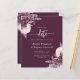 This elegant wedding save the date card features mauve floral bouquets set off with silver faux foil greenery in two corners, on a deep mauve background. The customizable text combines silver gray serif, italic and handwriting fonts. The reverse side features a matching mauve and silver floral design.