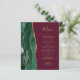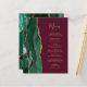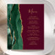 Den vänstra kanten på denna eleganta moderna bröllopsmeny har en smaragdgrön akvatint agat-kant med falskt guldglitter. Den anpassningsbara texten kombinerar guldliknande handskriven script och kopparplåt-font på en vinröd bakgrund. Baksidan har en matchande design i smaragdgrönt och guldagat.