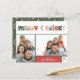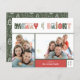 Ett färgstarkt budgetkort för julfotboll för familjer har två av dina bästa familjefotografier som accentueras av "Merry & Bright" med silikisk flerfärgad helgdag. Anpassa med ditt namn och året. Korten återgår till roligt Julgran mönster på en grönt.