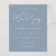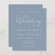Den här enkla, moderna bröllopsinbjudan innehåller vit text på en dammig blå bakgrund, med ord "Bröllop av" i snyggtens handskriftskalligrafi. Lägg till information om namn i briden och trippen och bröllop i vitt sans serif-teckensnitt. Baksidan är massiv dammig blå.