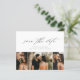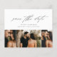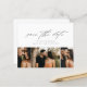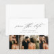 Ett budgetvänligt, minimalistiskt fotobrevkort med vacker script kalligrafi, 3 foton och minimal text på framsidan. Baksidan innehåller bröllopswebbplatsen för mer information. Klicka på redigeringsknappen för att anpassa denna design.