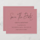 Budget Minimalist Script Dusty Rose Save The Date. Ett budgetalternativ i mindre storlek, 4,5” x 5,6”. Finns i halvmatt 110 g kartong som är standardalternativet (tjockare för inbjudningar), ELLER i SATIN FINISH 80 g TUNNARE PAPPER (idealisk för medföljande kort). Kuvert är ett tillval och är något större än kortets storlek. Enkel elegans med Save The Date i ett modernt typsnitt. Resten av texten kan du enkelt anpassa. Visas här i svart på Dusty Rose, men text- och bakgrundsfärgerna kan ändras om du önskar via alternativet "anpassa ytterligare".