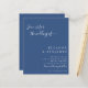 Budget Elegant minimalistisk chic script bröllopsinbjudan med RSVP-webbplats; fransk blå bakgrund med vit text