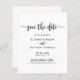 Elegant skript minimalistisk modern icke-foto svart-vit bröllops-spara-datum-kort personlig prisvärd låg budget flygblad. Enkel ren designmall med elegant kursiv handskriven kalligrafi penselskript "Spara datum" text i svart på vit bakgrund.