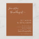 Lägg märke till din stora dag med denna budgetvänliga inbjudan till elegant bröllop med minimalistiskt skript för chic på en terracotta-bakgrund med skarp vit text. Designat för det moderna par, det innehåller en ren och snyggt med plats för att din OSA webbplats, skapar den både praktisk och vacker. Perfekt för att skapa en varm och inbjudande ton. Med det här prisvärda alternativet kan du se till att bröllop-skrivbordet är fantastiskt utan att banken bryts!