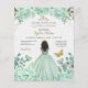 Budgeterad Elegant Mint Guld Butterfly Blommigt Princess Quinceañera Quince Investigation