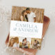 En budget modern typ 4 foto bröllopsinbjudan med stora namn. Klicka på redigera för att anpassa denna design.