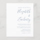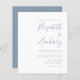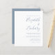 Denna enkla moderna bröllopsinbjudan har dammig blå text på en vit bakgrund. Lägg till namnen på bruden och brudgummen i stilfull handskriven kalligrafi och detaljerna i sans serif-teckensnitt. Baksidan är en matchande nyans av enfärgad dammig blå. OBS: Kuvert ingår inte automatiskt med dessa budgetinbjudningar, så glöm inte att välja alternativet "vita kuvert"!