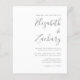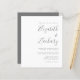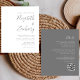 Denna enkla moderna bröllopsinbjudan har grå text på vit bakgrund. Lägg till namnen på bruden och brudgummen i snygg handskriven kalligrafi och detaljerna i sans serif-teckensnitt. Baksidan ger utrymme för detaljer om bröllopet på en enfärgad grå bakgrund, tillsammans med en QR-kod som gästerna kan skanna för att besöka din webbplats och svara. OBS: Kuvert ingår inte automatiskt med dessa budgetinbjudningar, så glöm inte att välja alternativet "vita kuvert"!