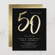 Den moderna minimalistiska 50:e födelsedagsfest inbjudan har handskript 50 för snyggt faux guld och dina party-detaljer i klassiskt serif-teckensnitt på svart bakgrund färg, enkel och elegant, underbar vuxen, delårsdag för manar och kvinnor. Den svarta bakgrunden färg kan ändras till valfritt färg.